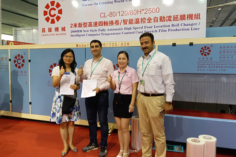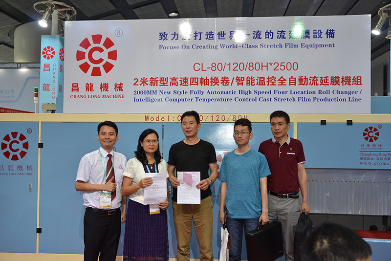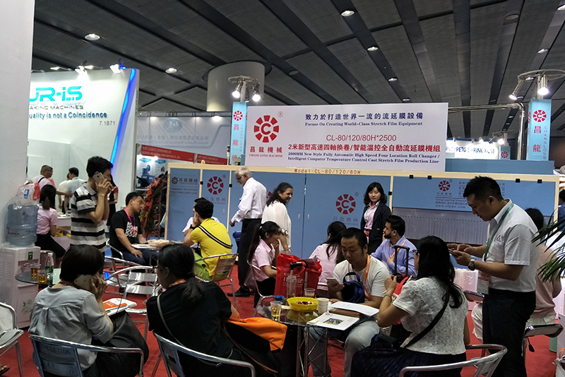 昌龙机械作为流延膜设备行业龙头企业参加了本次盛会,昌龙机械所展出的CL-80/120/80H 2米新型高速四轴换卷全自动流延膜机组搭载意大利品牌触摸屏智能温控系统,智能检测环境温度和工作电流,自动区分启动预热时间和精准恒温范围,稳定可靠,提高产品质量,有效降低生产成本,成为本次展会的一大亮点,受到众多新老客户的青睐。