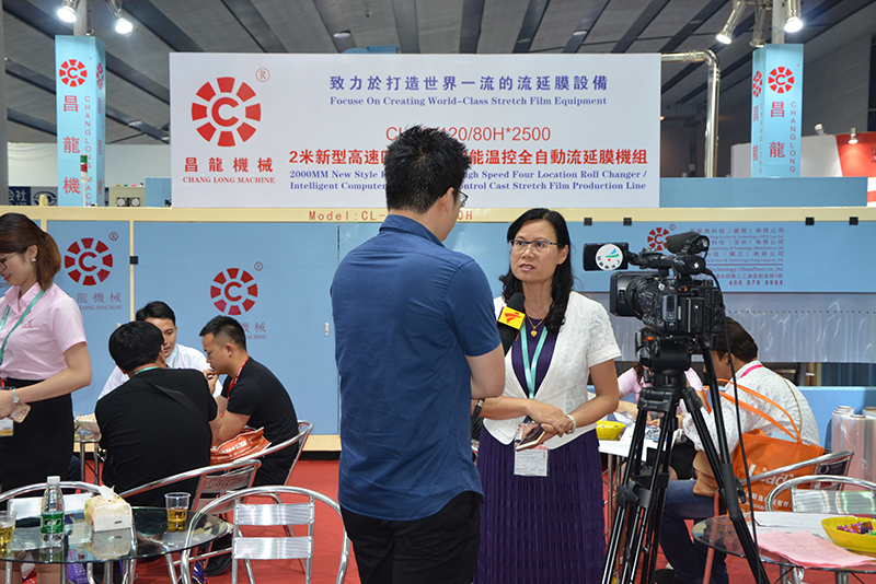作为国家级高新技术企业的昌龙机械,拥有流延膜设备相关的发明专利2项和实用新型专利28项、引领着国内缠绕膜设备的发展方向。国内外传媒争相播报,5月16日,广东卫视电视台记者现场采访昌龙集团总经理。
