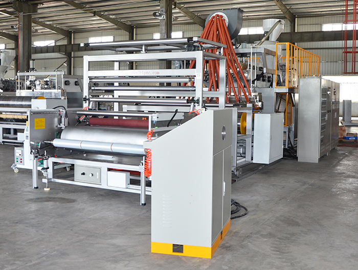 本机组主要适用于生产CPE、CPP、PP、PE、CEVA等流延膜、保护膜、牧草膜、缠绕膜,可加装电晕装置进行印刷。