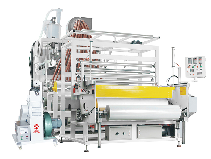 本机组主要适用于生产CPE、CPP、PP、PE、CEVA等流延膜、保护膜、牧草膜、缠绕膜,可加装电晕装置进行印刷。