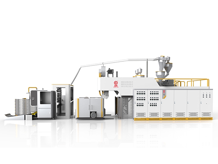 1)本机组采用熔体计量泵配精密度传感压力系统,严格控制挤出机输出胶量,确保出膜稳定,均匀挤出。